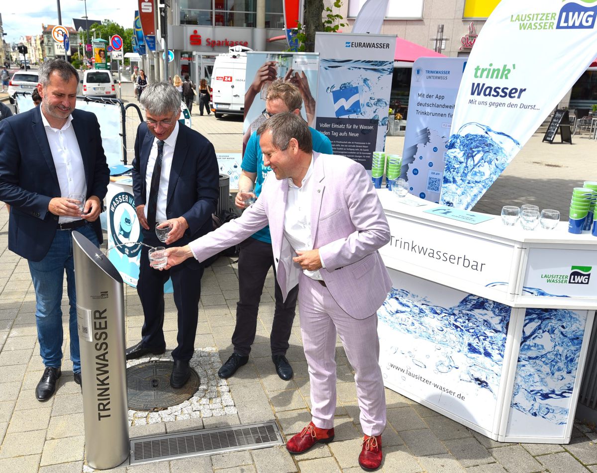 Haben Sie beim Stadtbummel schon mal Lausitzer Wasser genossen? Die Frische-Zapfstelle ist Teil der durch das Bundesumweltamt (BMUV) finanzierten Kampagne „Ein Spiel – ein Trinkbrunnen“.