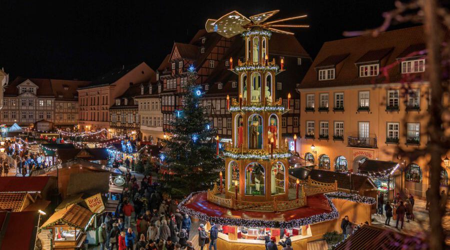 Musikalisch geht’s im Harz zu: „Quedlinburg singt“ am 19.12. um 17 Uhr – gemeinsam mit dem Fritz-Prieß-Chor und dem Posaunenchor der Kirchengemeinde. Auch an anderen Tagen, vom 26.11. bis 22.12., zeigt sich die Harzstadt stimmungsvoll: Der Weihnachtsmarkt bietet mit mehr als 50 Ständen kulinarische Feinheiten bis Kunsthandwerk, außerdem ein buntes Weihnachtsprogramm auf der Bühne und eine zauberhafte Lichtinstallation am Mathildenbrunnen.
