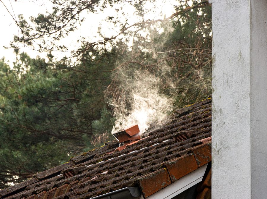 Hier an der Belüftung der Abwasserhausinstallation darf Nebel aufsteigen! Käme er aus der Regenrinne, wäre der Nachweis für einen Fehleinleiter erbracht.