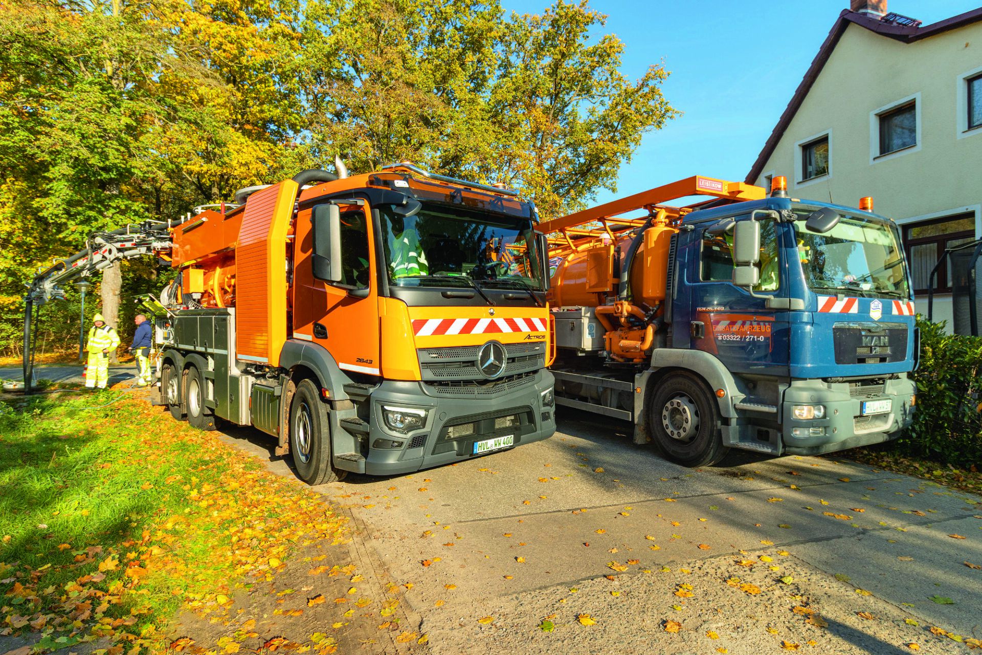 Der orangefarbene High-Tech-Sauger blitzt wie neu. „Das täuscht etwas“, lacht Matthias Ketzlin. „Wir haben ihn vor dem Fototermin nochmal gründlich gereinigt.“ Der OWA-Vorarbeiter und Abwassermaschinist fährt mit seinem Kollegen Florian Teitge seit September den „neuen Kombi“, wie die OWA-Kollegen den Neuzugang nicht ohne Stolz nennen. „Der ist zwar erst ein paar Wochen im Einsatz, wird aber schon ordentlich beansprucht.“