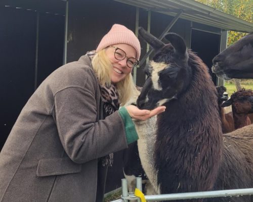 „Auf dem Althof kann man Wanderungen mit Alpakas oder Lamas machen. Das ist eine schöne Strecke durch Wald und Flur, so etwa zwei bis drei Stunden, und dabei führt man das Tier an der Leine. Man ist an der frischen Luft und kann dem Alltag entfliehen. Jeder kann sich sein Alpaka aussuchen oder aber das Alpaka sucht sich seine Begleitung aus. Das Tier gibt das Tempo vor und der Mensch muss sich darauf einstellen. Die Tiere spiegeln unsere Stimmung wider: Wenn man selbst schlecht gelaunt ist, dann ist auch das ­Alpaka störrisch. Man geht mit dem Tier eine Art Symbiose ein. ­Alpakas sind ganz liebe Tiere, freundlich und neugierig, aber nicht aufdringlich. Sie strahlen eine unheimliche Ruhe aus. So eine Wanderung ist einfach ein ganz besonderes Erlebnis. Mein Tipp: Gute Laune mitbringen und nicht gestresst und abgehetzt ankommen, weil sich das auf die Tiere überträgt.“