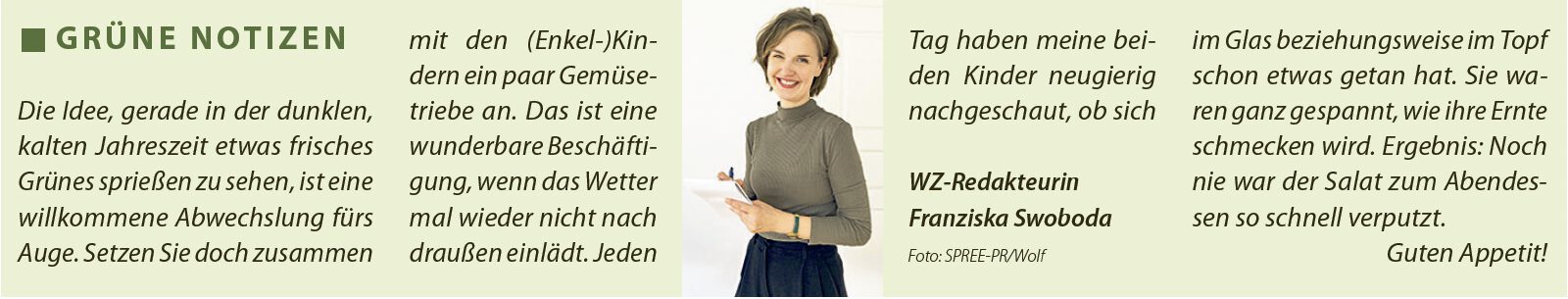 Eigentlich können Sie gleich loslegen, denn für den Anfang hat man das meiste in der Regel schon im Haus: Kleine Schüsseln, Deckelgläser in unterschiedlichen Größen und ein sauberes, scharfes Messer werden benötigt. Wichtig ist ein Platz zum Gedeihen mit viel Licht und Wärme, wie eben eine Fensterbank. Wir von der WASSERZEITUNG haben uns in die Gartenarbeit gestürzt und führen Sie in einer Schritt-für-Schritt-Anleitung für Frühlingszwiebeln und Salat durch das Projekt.