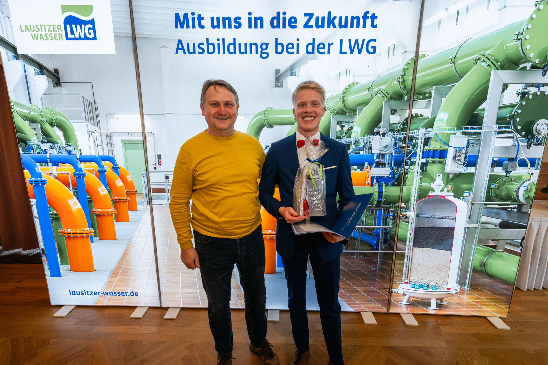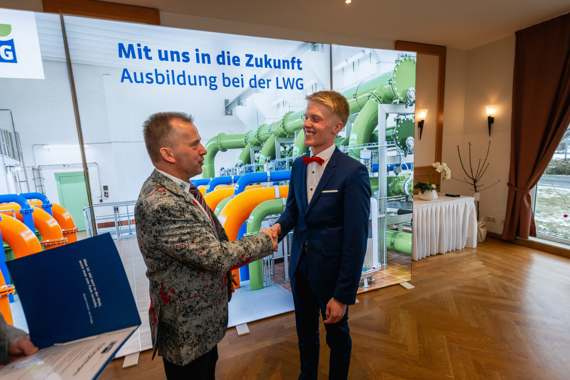 Jörg Lange, Ausbildungsleiter der LWG (li.), gratuliert seinem nun ehemaligen Schützling zum hervorragenden Ausbildungsabschluss.