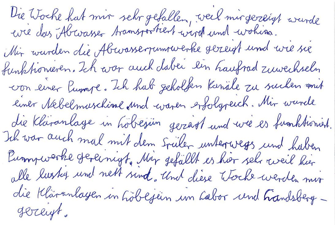Unser Schulpraktikant Elias Bieler hat einen Blick hinter unsere Kulissen geworfen – ein Auszug aus seinen Worten: „Die Woche hat mir sehr gefallen, weil mir gezeigt wurde, wie das Abwasser transportiert wird und wohin. Mir wurden die Abwasserpumpwerke gezeigt und wie sie funktionieren. Ich habe geholfen, Kanäle mit einer Nebelmaschine zu suchen – wir waren erfolgreich. Mir gefällt es hier sehr, weil alle lustig und nett sind.“ Neben Führungen durch unsere Kläranlage bieten wir auch Schulpraktika an. Kontakt: info@wazv-saalkreis.de oder 034606-3600.