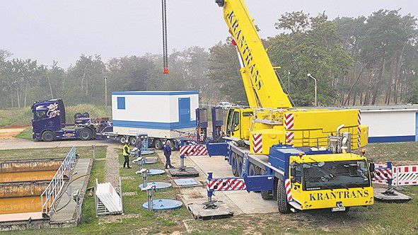 Nur ein Schwerlastkran kann die neue Anlage heben. -