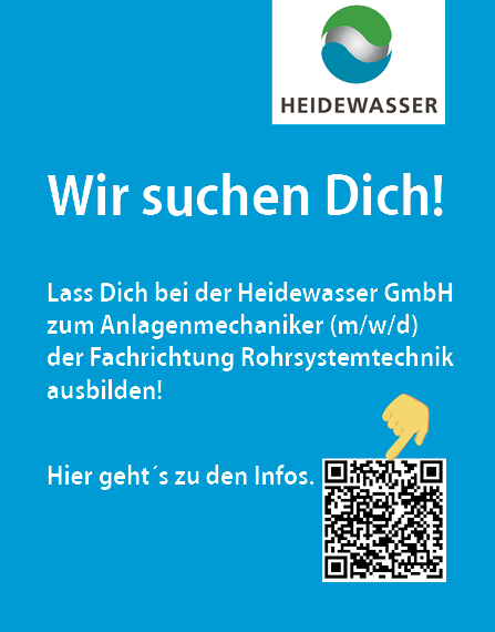 Schülerinnen und Schüler aufgepasst! Die Heidewasser GmbH sucht zur Einstellung im Meisterbereich Behnsdorf einen Auszubildenden zum Anlagenmechaniker Fachrichtung Rohrsystemtechnik (m/w/d). Die Bewerbungsfrist endet am 15. Mai 2023. Mehr …