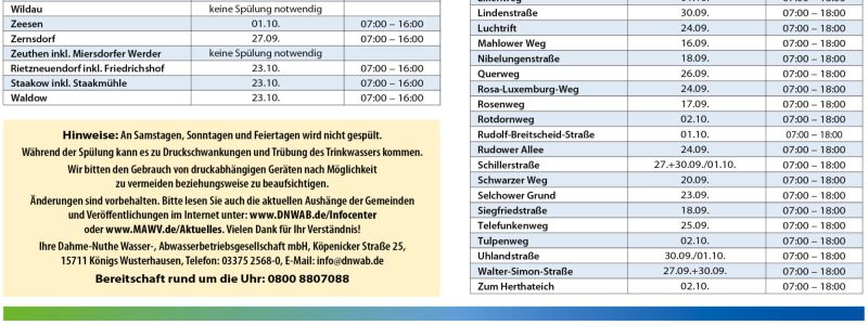 Das Großreinemachen in den Trinkwasserrohren steht im Herbst auf dem Programm – hier die Übersicht.